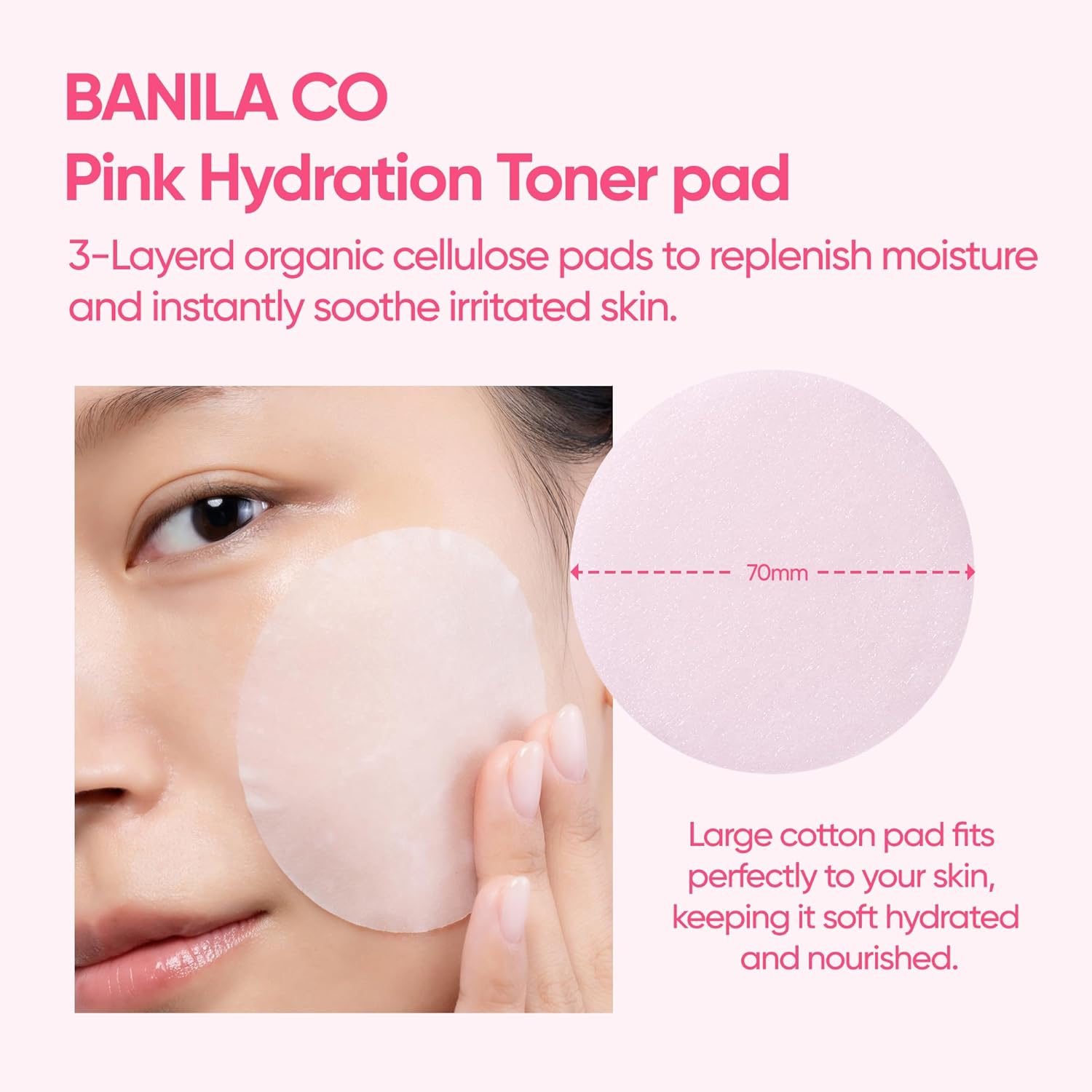 BANILA CO – Clean It Zero Pink Hydration Toner Pad | 3 straturi vegane pentru hidratare intensă cu Acid Hialuronic & Complex de vitamine 70 buc